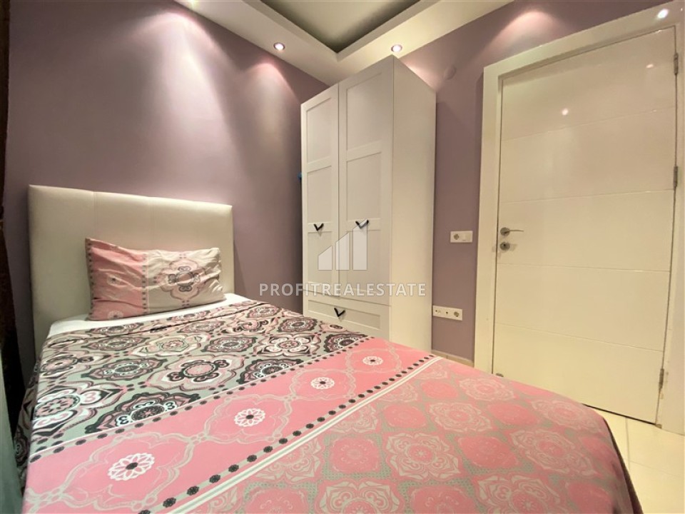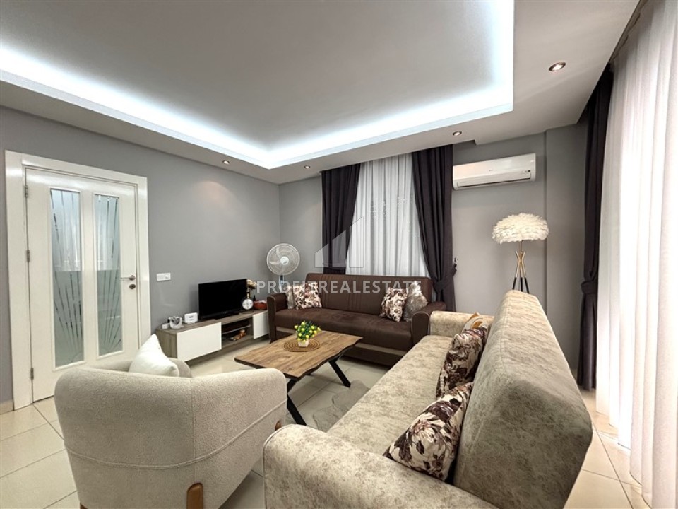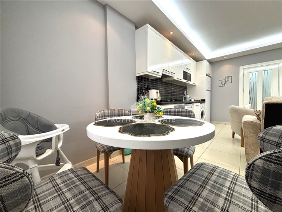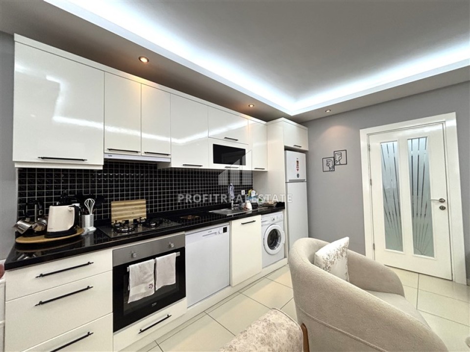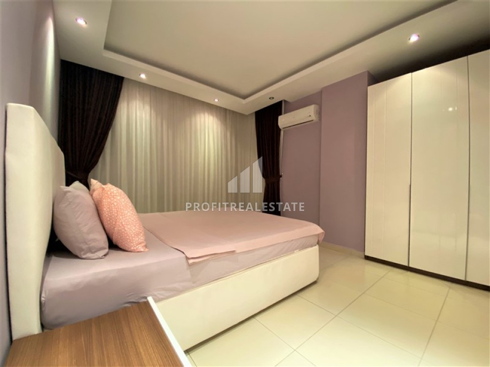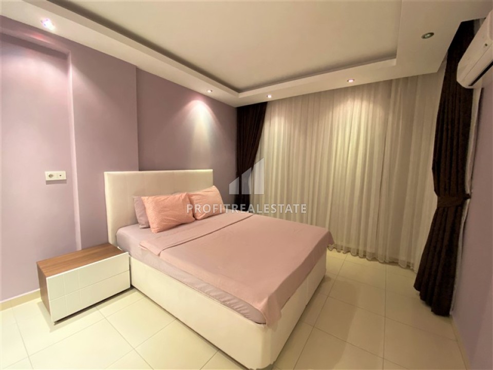 Стильная трехкомнатная квартира, 85м², в современном доме с парковкой в центре Алании, в 250 метрах от пляжа Клеопатра.