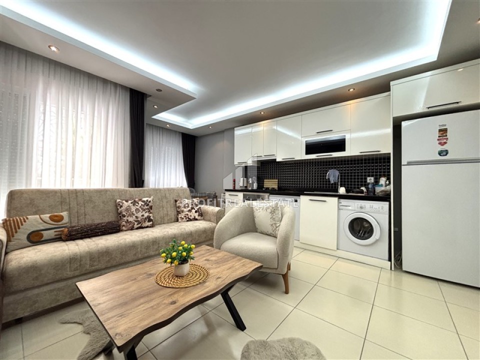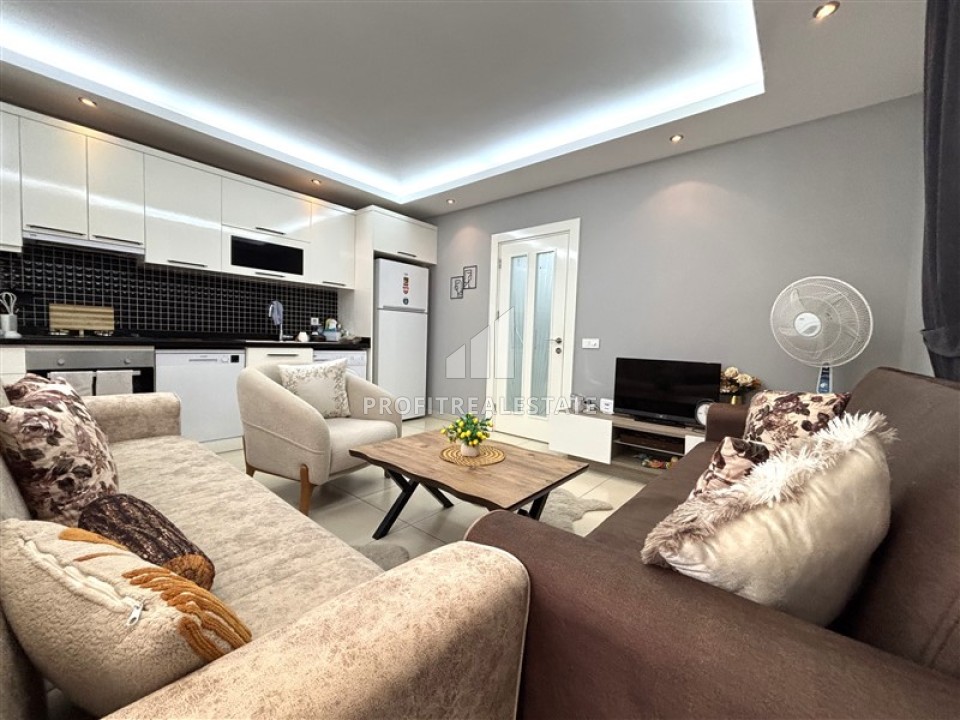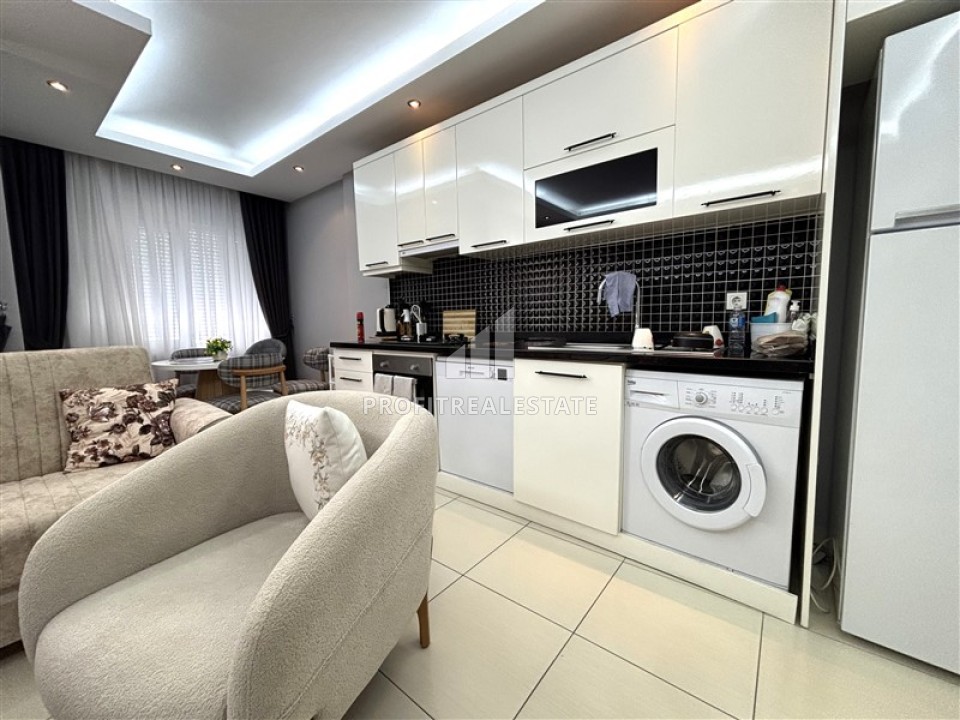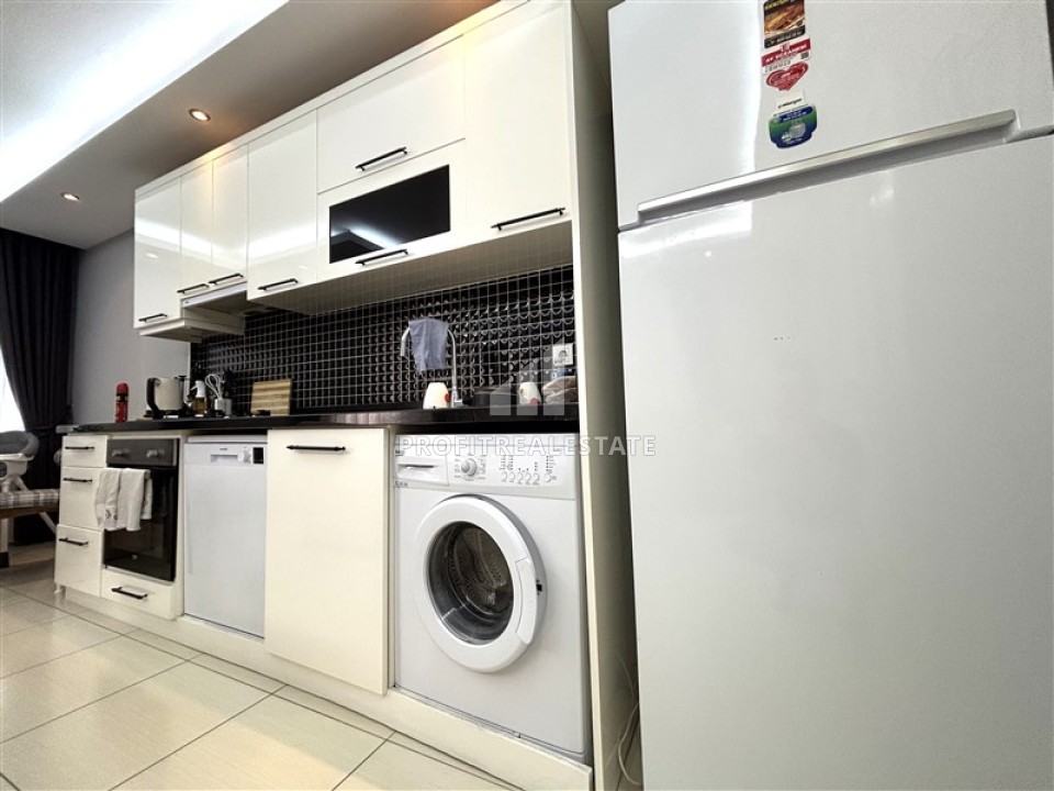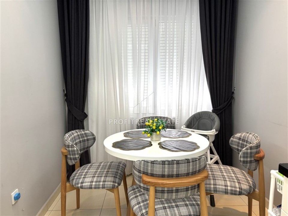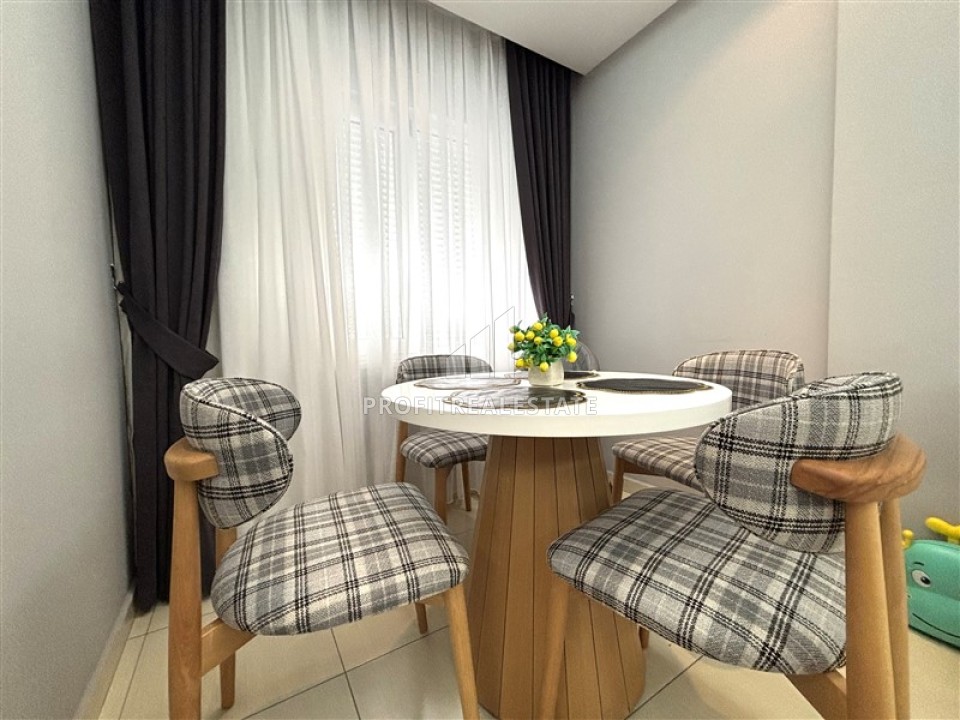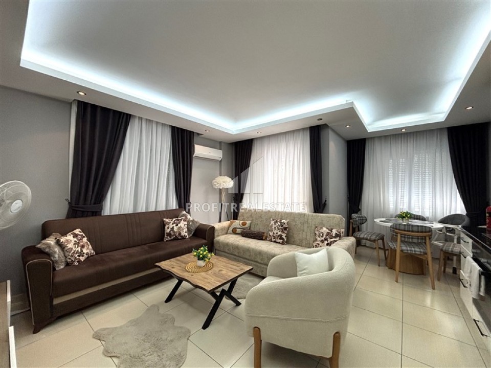 Стильная трехкомнатная квартира, 85м², в современном доме с парковкой в центре Алании, в 250 метрах от пляжа Клеопатра.