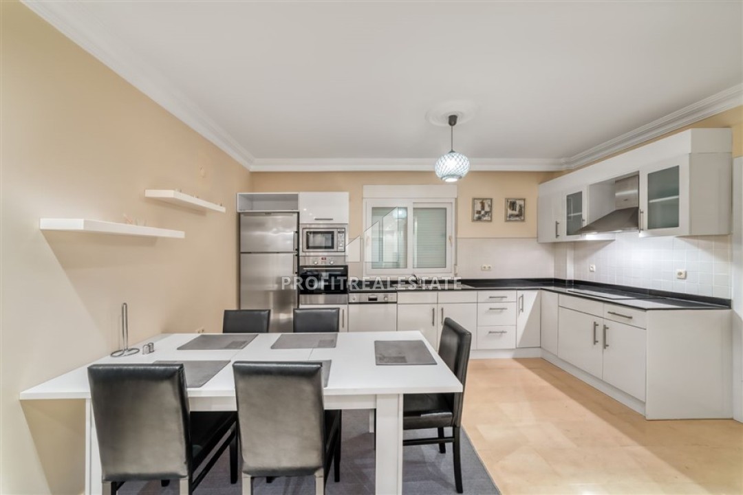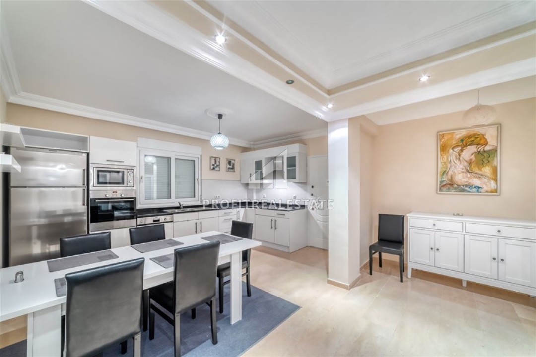 Вилла имеет площадь 250м² и планировку 3+1. Центральное место занимает гостиная с кухней. Это большое пространство состоит как бы из двух частей: в одной находится зона отдыха с элегантной мягкой мебелью, во второй - большая кухня с комплектом необходимой бытовой техники. Своеобразной границей является обеденная зона на 6 персон. Вилла располагает тремя меблированными спальнями и двумя ванными комнатами (одна общая, а вторая приватная в мастер-спальне). Каждая спальная комната имеет выход на балкон с видом на, лежащую под ногами, центральную часть Алании, полуостров со старинной крепостью и, конечно же, необъятное море.