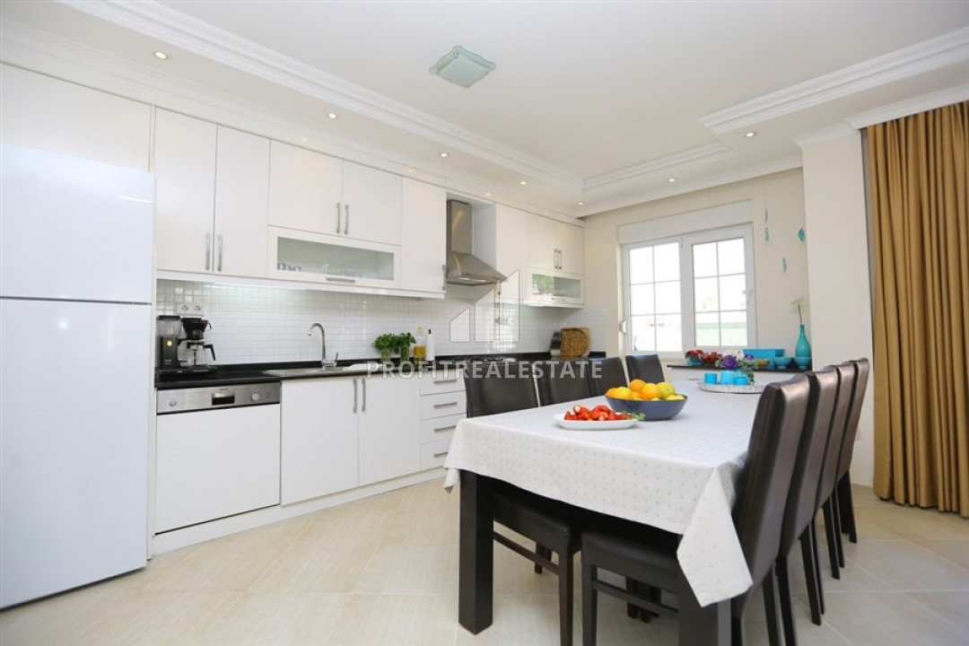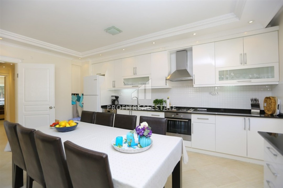 Предлагаем вашему вниманию отличное предложение: дуплекс-пентхаус планировки 4+1, общей площадью 220м² в комплексе, сданном в эксплуатацию в 2007 году. Апартаменты имеют просторную гостиную, совмещенную с кухней американского типа, четыре спальни, две ванных комнаты (по одной на каждом этаже) с качественной мебелью и сантехникой. В гостиной разместилась симпатичная мягкая мебель. Просторная кухня имеет вместительный гарнитур с гранитной рабочей поверхностью, множеством шкафов для посуды, полным комплектом бытовой техники и находится несколько обособленно от зоны отдыха. Здесь же обустроена обеденная зона. Удобная лестница из прихожей ведет на второй этаж. Все четыре спальни меблированы, две из них расположены на нижнем этаже и имеют балконы, а еще две спальни находятся на верхнем этаже. В холле верхнего этажа обустроена небольшая прачечно-кухонная зона. Два балкона на нижнем этаже и две террасы на верхнем укомплектованы садовой мебелью и имеют потрясающие виды на Средиземное море, горы Торос и крепость Алании, особенно красивую с вечерней подсветкой. Квартира продается с мебелью и бытовой техникой, представленной на фото и полностью готовы к проживанию. Приобретение же этих великолепных апартаментов позволит претендовать на получение ВНЖ по праву собственности.