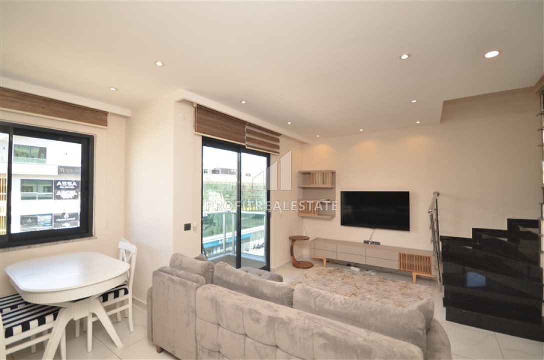 Стильный дуплекс с одной спальней, 85м², в современном комплексе с хорошей инфраструктурой в районе Оба, Алания под ВНЖ