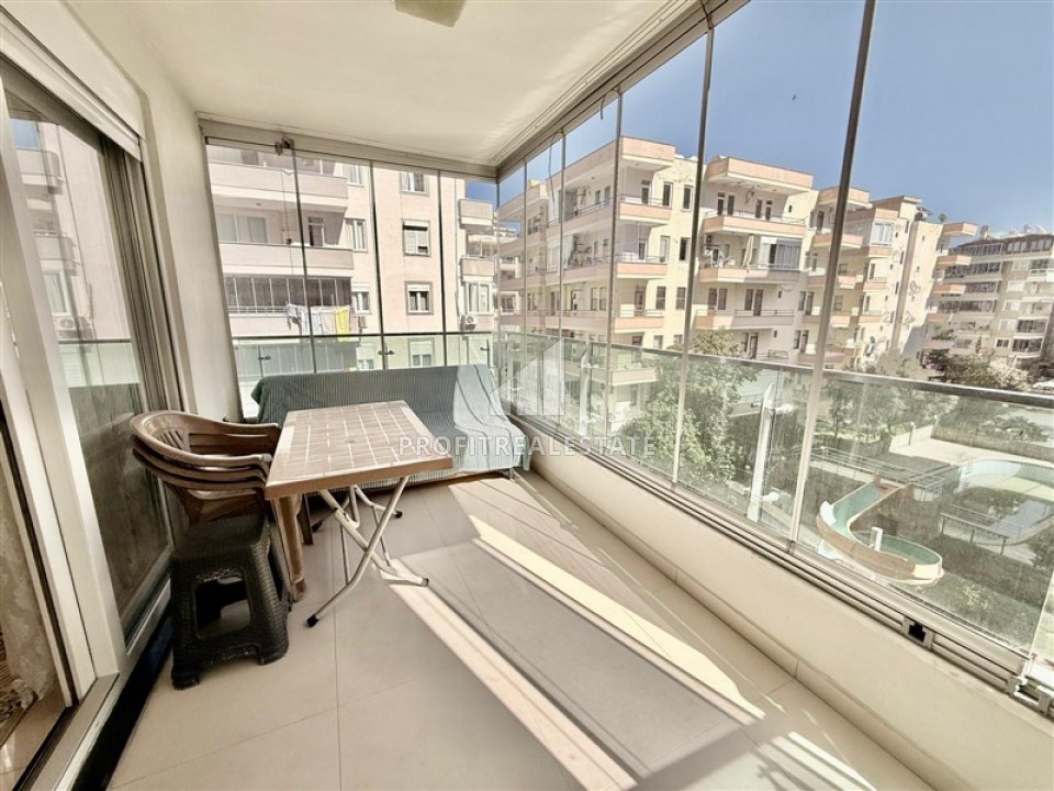 Апартаменты уютные, ухоженные, планировки 1+1, общей площадью 66м², находятся на 3 этаже одиннадцатиэтажного блока, в комплексе, сданном в эксплуатацию в 2016 году. В квартире есть гостиная, совмещенная с угловой кухней американского типа, спальня, небольшая прихожая, большая ванная комната, и просторный балкон с боковым видом на горы Торос. В салоне разместился большой угловой диван. Кухня с гранитной рабочей поверхностью, множеством мест для хранения и стильной барной стойкой укомплектована необходимой бытовой техникой. Спальня меблирована. Приятным сюрпризом для новых владельцев станет наличие ванной, вместо привычной душевой кабины. Квартира выставлена на продажу с мебелью, бытовой техникой, предметами интерьера, как представлено на фото.