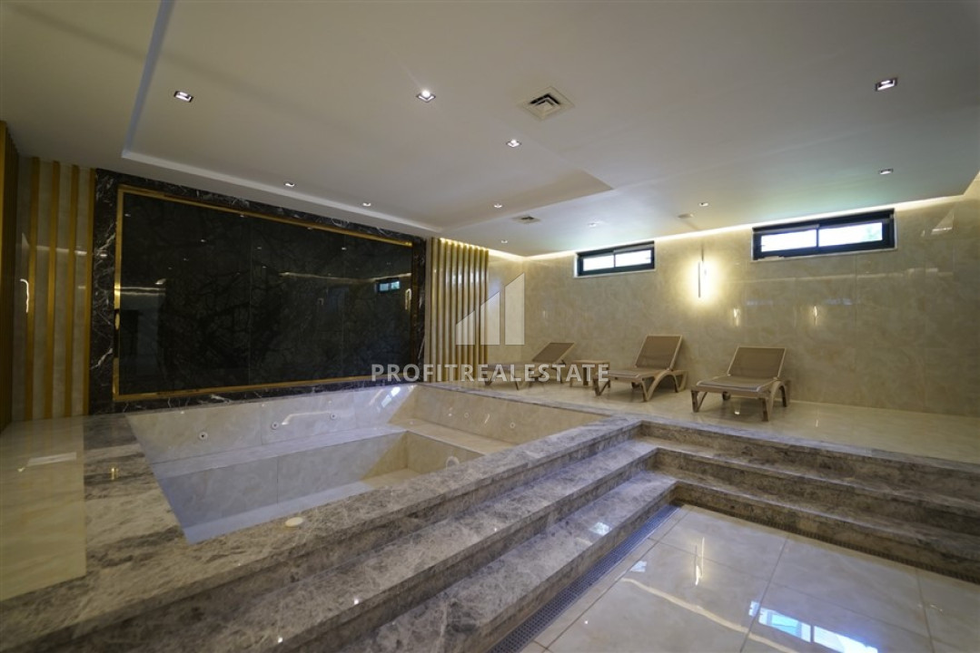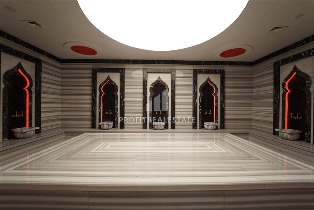 В 400 метрах от центра Махмутлара и 650 метрах от моря в 2022 году завершилось строительство нового жилого комплекса, который оправдает все ваши ожидания. Современное архитектурное решение, функциональное зонирование территории, богатейшая внутренняя инфраструктура – это все о нем. Здесь собственникам предложен широчайший спектр услуг, направленный на повышенный комфорт проживания. Среди них: плавательный бассейн с баром в центре, аквапарк, крытый отапливаемый бассейн, хамам, сауна, тренажерный зал, бильярд, паровая комната, солевая комната, массажный кабинет. На закрытой охраняемой территории высажен зеленый сад с ландшафтным дизайном, установлены беседки для отдыха, игровая площадка, теннисный корт, баскетбольная площадка, настольный теннис. Если вы любите смотреть фильмы на большом экране – перед вами всегда будут открыты двери кинотеатра. Для владельцев автотранспорта предусмотрены как открытая, так и крытая парковка. Кроме того, во всех социальных зонах будет доступ к общему Wi-Fi. От перебоев с электричеством вас избавит генератор, а за порядком будет следить смотритель.