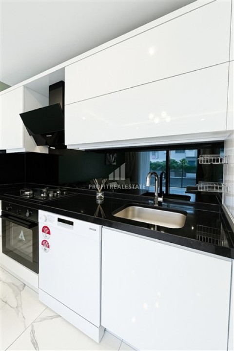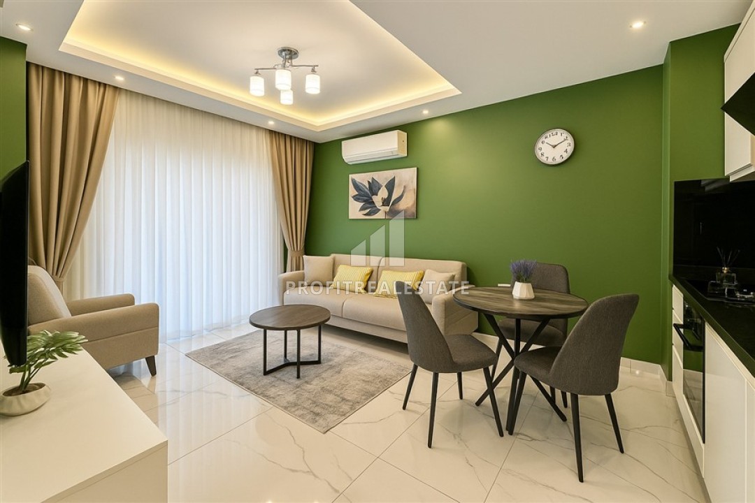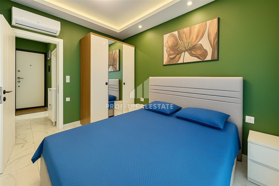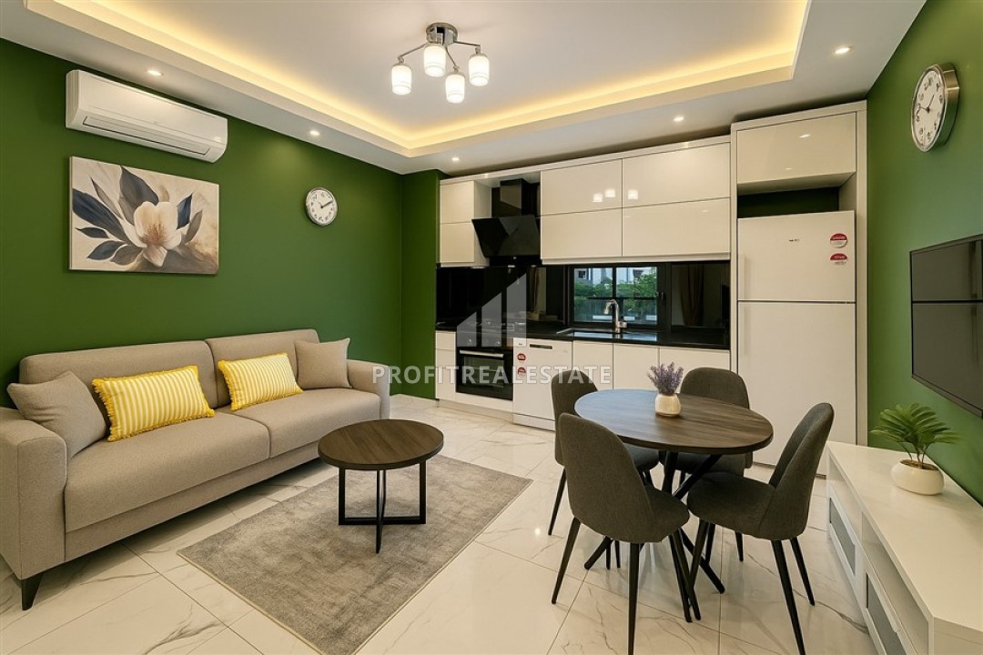 Уютная меблированная двухкомнатная квартира 43м², в новом комплексе с инфраструктурой, в центре Аланьи