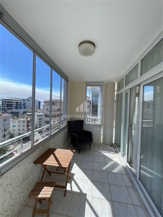 Апартаменты планировки 2+1 общей площадью 110м², находятся на высоком 9 этаже. В данную планировку входит: гостиная, совмещенная с открытого типа кухней, две спальни, две ванных комнаты, а также три больших балкона, два из которых остеклены. Кухонная зона располагает угловым гарнитуром, с рабочей поверхностью из натурального гранита, множеством мест для хранения и комплектом бытовой техники. Обеденная зона на 4-6 персон отделяет кухню от зоны отдыха, в которой разместилась симпатичная мягкая мебель. Спальни меблированы. В ванных комнатах установлено качественное сантехническое оборудование. В прихожей есть место для гардероба. С балконов открывается вид на Средиземное море и могущественные Торосские горы.