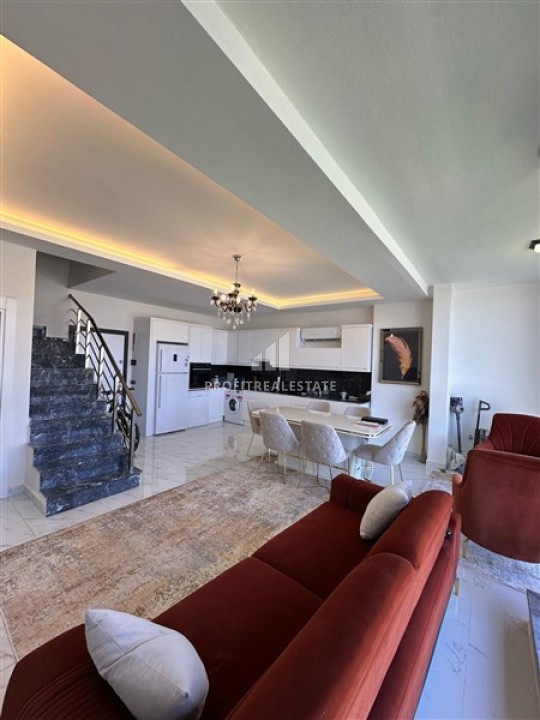 Видовой меблированный пентхаус с тремя спальнями, 145м², в резиденции с инфраструктурой у моря в Каргыджаке, Алания