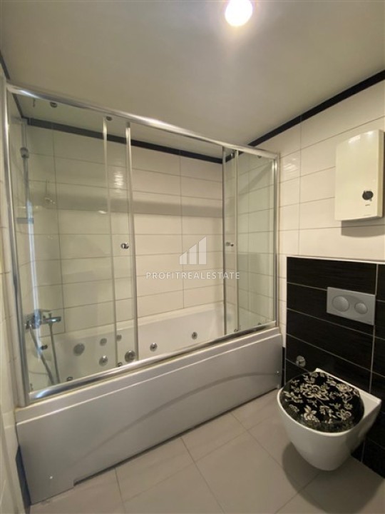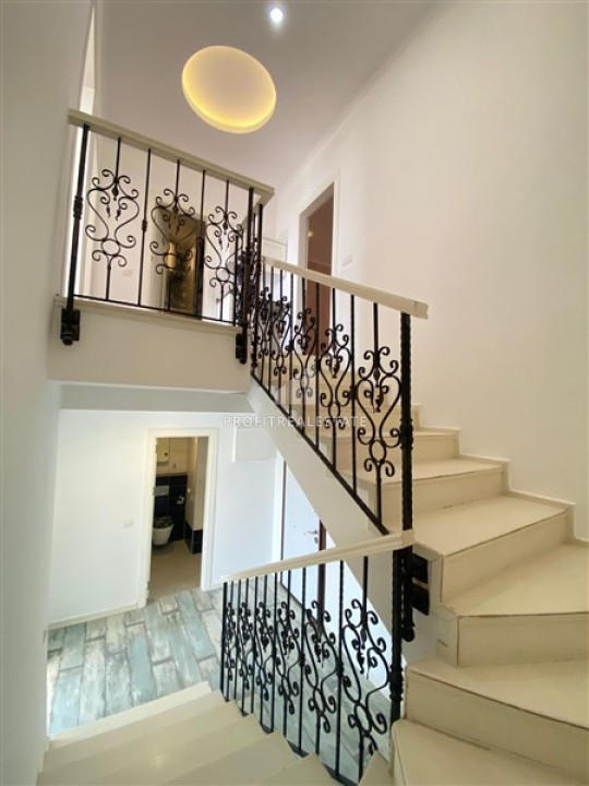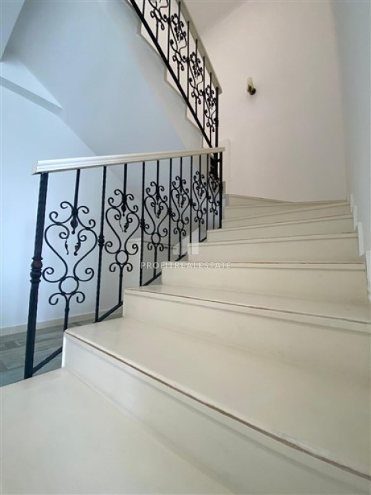 Пентхаус располагает просторной гостиной, объединенной с кухней американского типа. Угловая кухонная зона очень больших размеров с полным комплектом бытовой техники. В апартаментах три просторные спальни и две ванные комнаты (по одной на этаже), укомплектованные качественной мебелью и сантехникой, причем в одной из них установлена душевая кабина, а во второй – ванна. В каждой комнате установлены кондиционеры и накопительный бойлер в одной из ванных. В просторной прихожей расположена удобная гранитная лестница, объединяющая этажи. Из гостиной и спальни нижнего этажа можно выйти на два просторных балкона, а со спален верхнего – на просторную террасу с захватывающим видом не Средиземное море, Аланийский полуостров и горы Торос.
